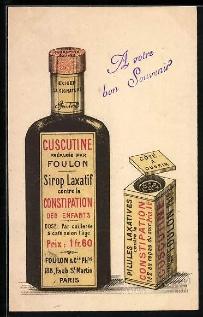 AK Sirop Laxatif contra la Constipation des Enfants, Reklame für Medikament Cuscutine