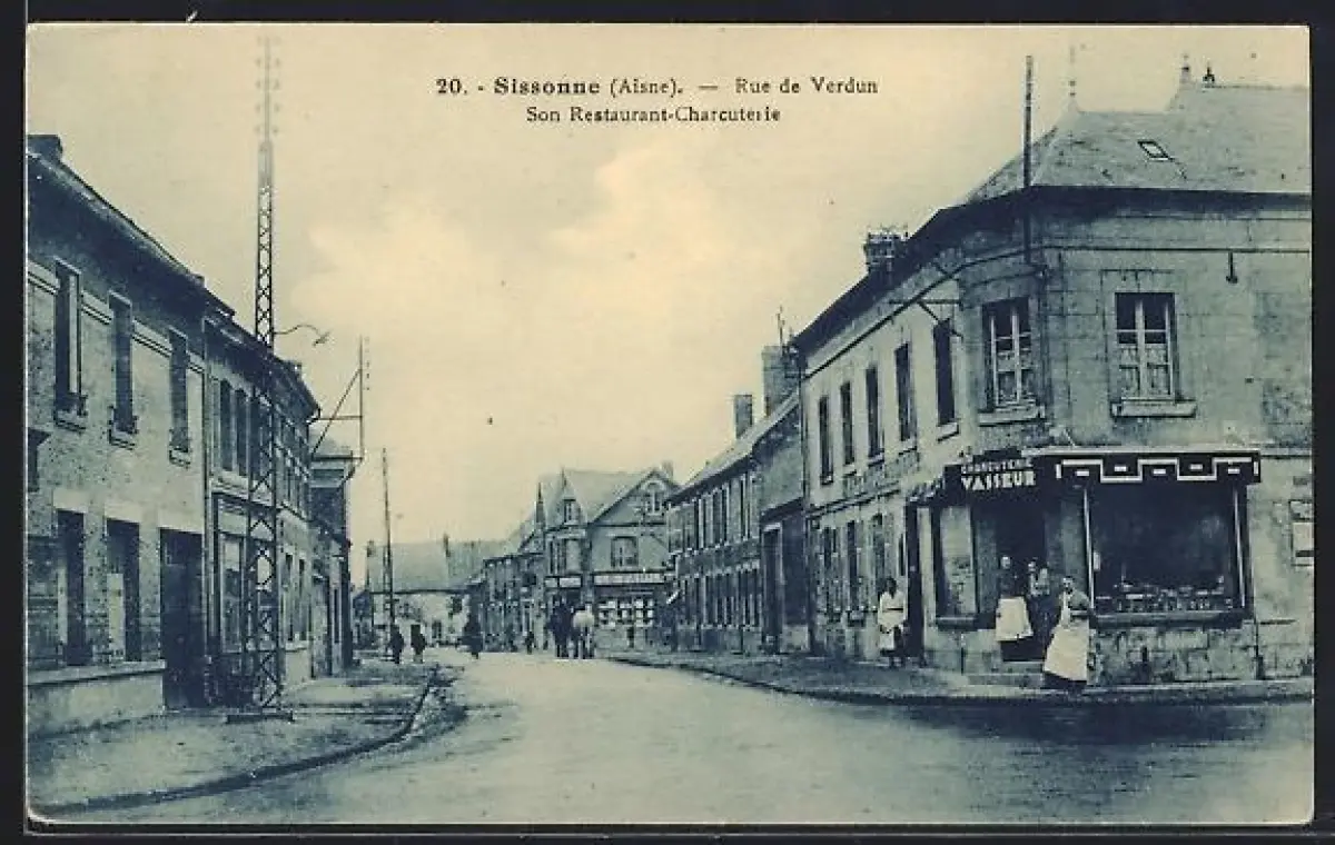 AK Sissonne /Aisne, Rue de Verdun Son Restaurant-Charcuterie