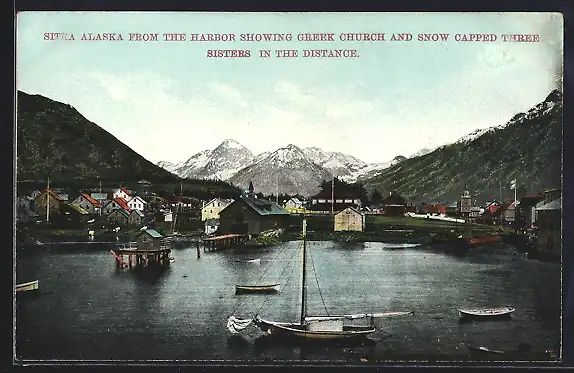 AK Sitka /Alaska, View from the harbor with Three Sisters in the distance