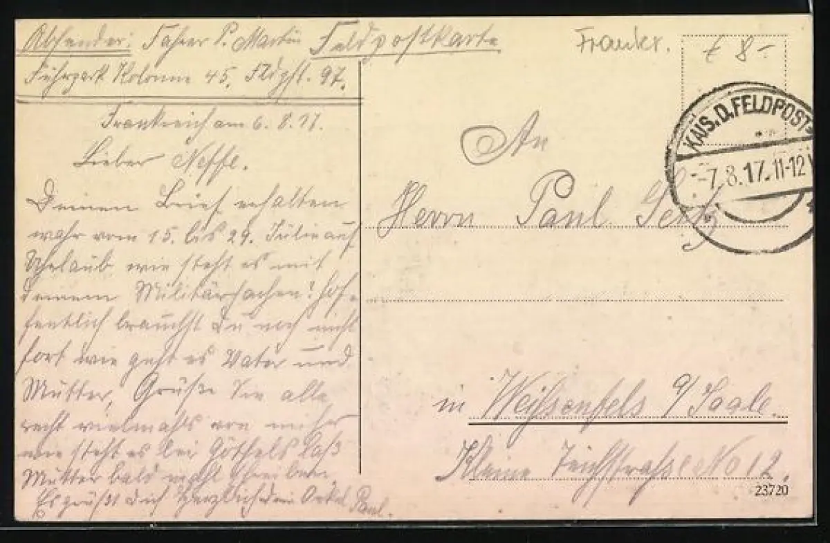 alte Ansichtskarte, gelaufen 1917, guter Zustand