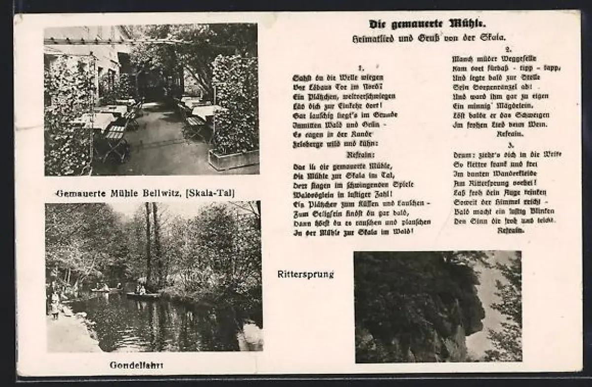 AK Skala-Bellwitz, Gasthaus Gemauerte Mühle, Gondelfahrt, Ritterspung