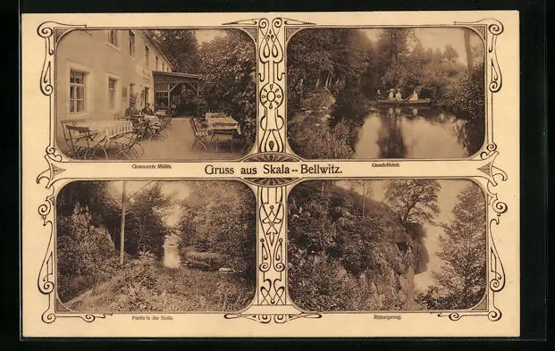 AK Skala-Bellwitz, Gemauerte Mühle, Gondelfahrt, Partie in der Scala