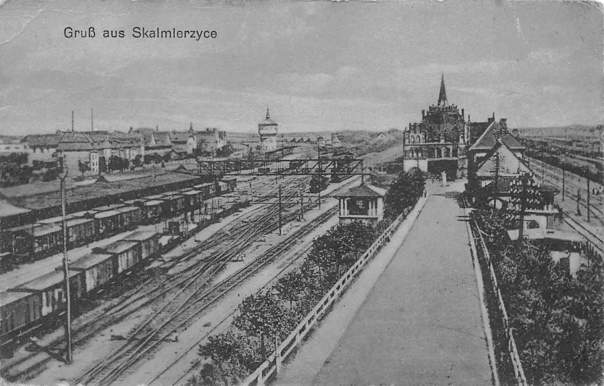 AK Skalmierzyce Posen Bahnhof, Eisenbahn Postkarte 1918