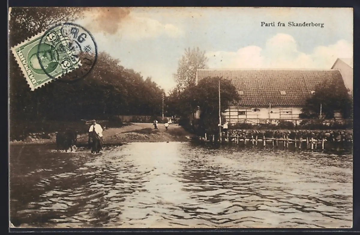 AK Skanderborg, Gebäudeansicht vom Wasser aus, Reiter
