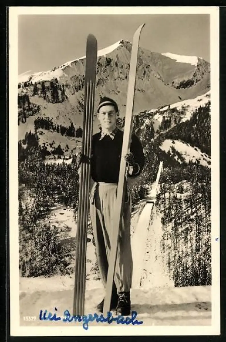 AK Skiläufer Toni Brutscher im schneebedeckten Oberstdorf