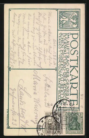 gelaufen 1916, Eckknick links oben, guter Zustand