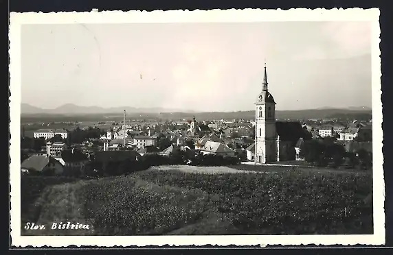 AK Slov. Bistrica, Ortsansicht mit Kirche u. Fernblick