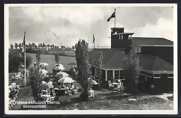 AK Sneek, Sneekermeer, Terras Paviljoen Hotel