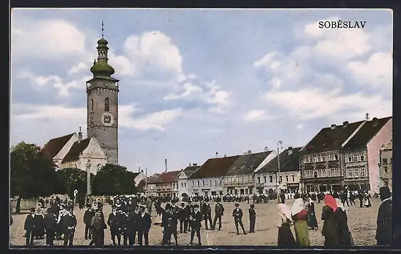 AK Sobeslav, Marktplatz mit Kirche