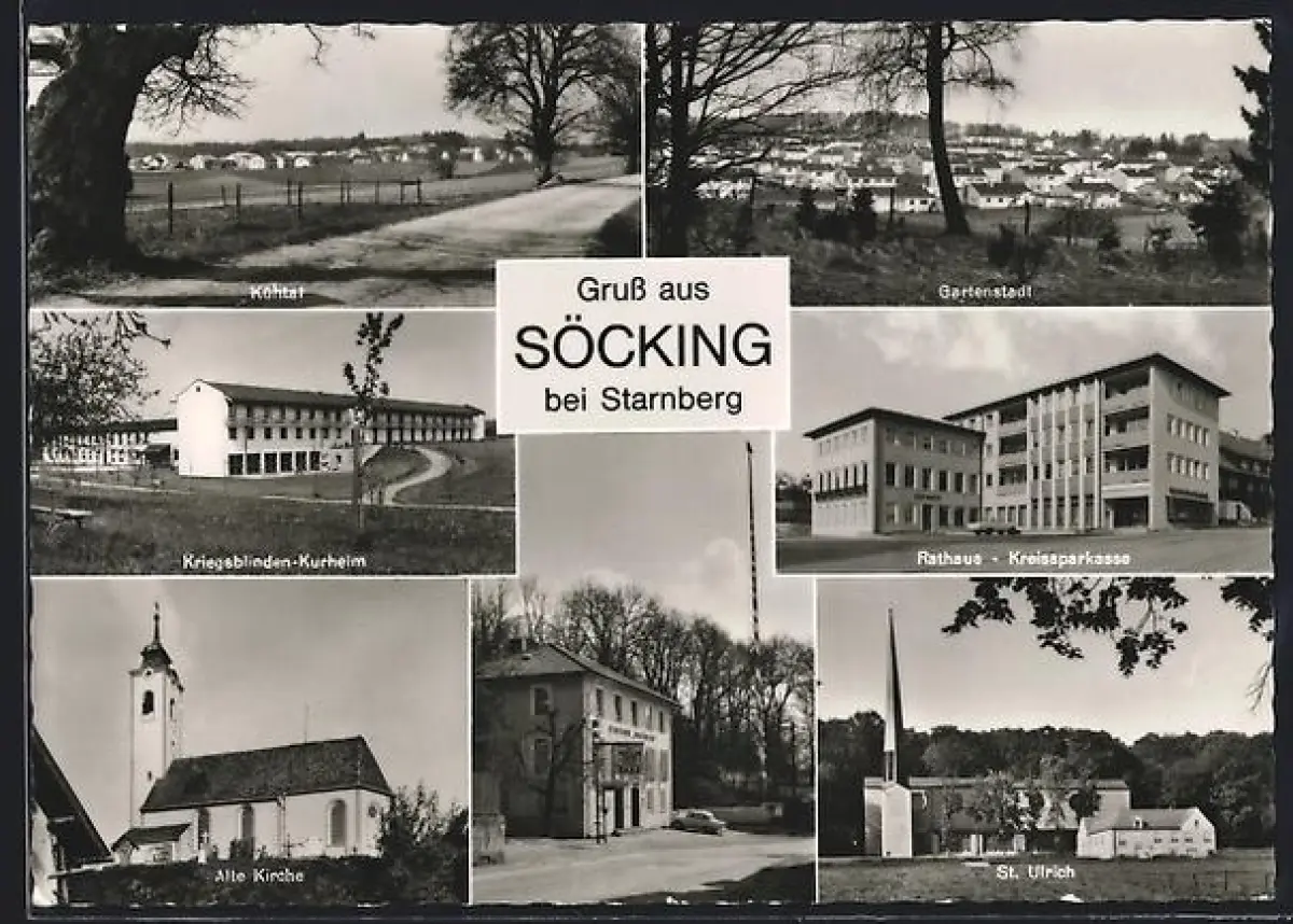 AK Söcking bei Starnberg, Rathaus, Kriegsblinden-Kurheim, Alte Kirche