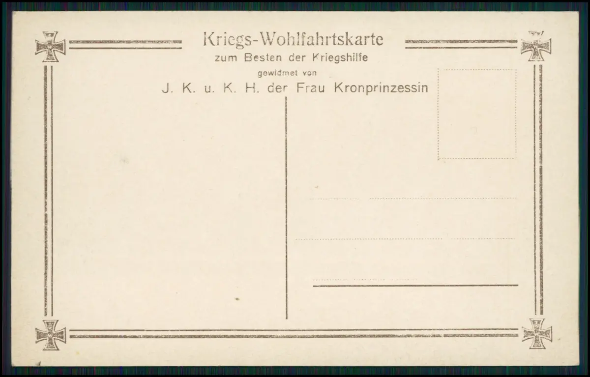 Berlin präsentiert hier eine Kriegs Wohlfahrtskarte, deren Motiv laut deiner Angabe die Söhne des letzten deutschen Kronprinzenpaares, also des Paares Wilhelm Prinz von Preussen und Cecilie von Mecklenburg Schwerin, zeigt.