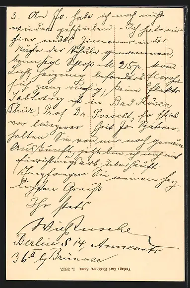Personenbezogene Daten auf der Rückseite der Karte wurden durch blauen Textmarker unkenntlich gemacht. Die blauen Stellen sind auf die Vorderseite durchgeweicht und wirken sich negativ auf das Postkartenfoto aus