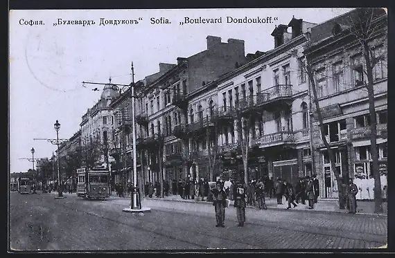 AK Sofia, Boulevard Dondoukoff, Strassenbahn