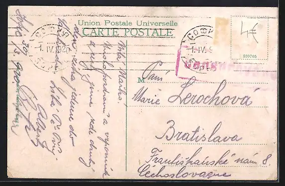 alte Ansichtskarte, gelaufen 1920, Briefmarke entfernt, Stempelspur, Eckknicke unten, guter Zustand
