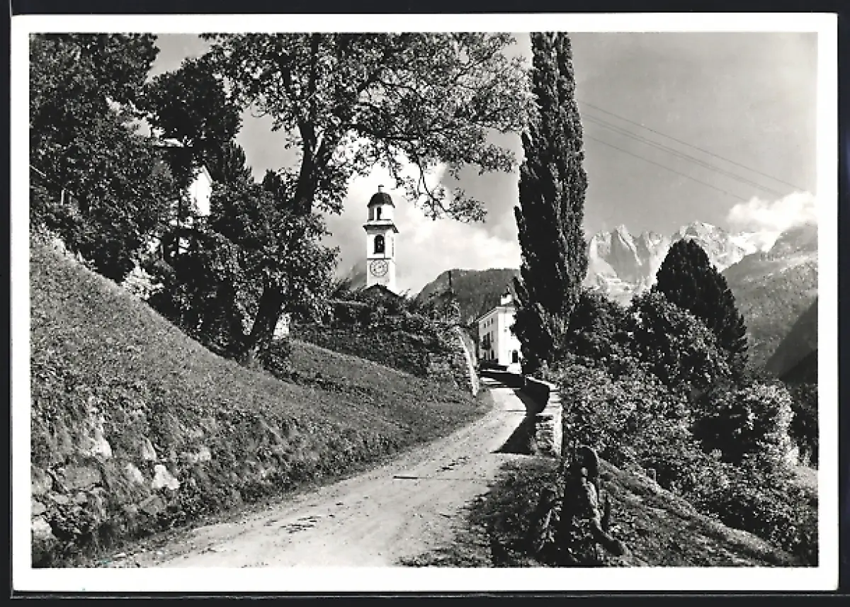 AK Soglio, Dorfeingang mit Kirche