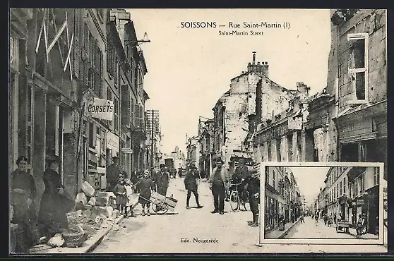 AK Soissons, Rue Saint-Martin, zerstörte Häuser