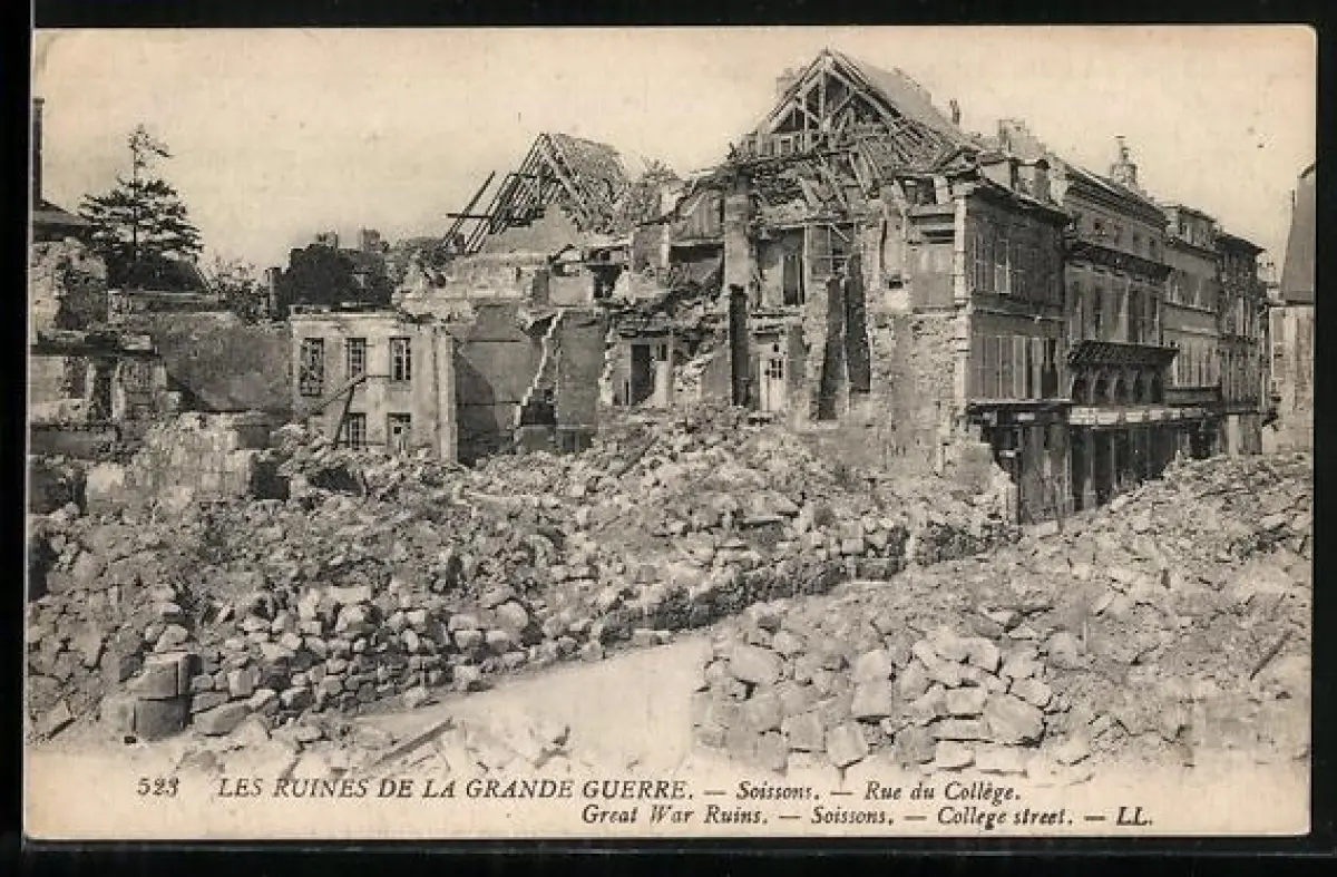 AK Soissons, Rue du Collège, les ruines de la Grande Guerre