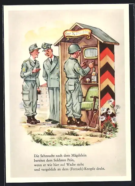 AK Soldat am Wachhäuschen dreht an den Knöpfen des Fernsehers