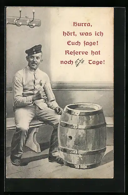 AK Soldat an einen Bierfass sagt Reserve hat noch ... Tage !
