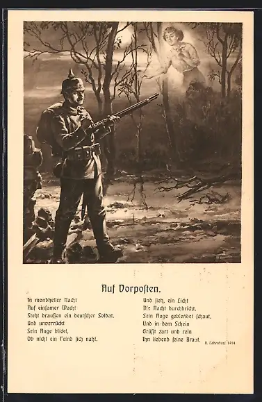 AK Soldat auf Vorposten, Geistererscheinung seiner Frau, Gedicht