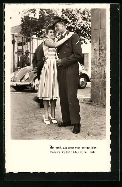 AK Soldat der Bundeswehr mit junger Frau, Ich weiss, Du liebst mich...