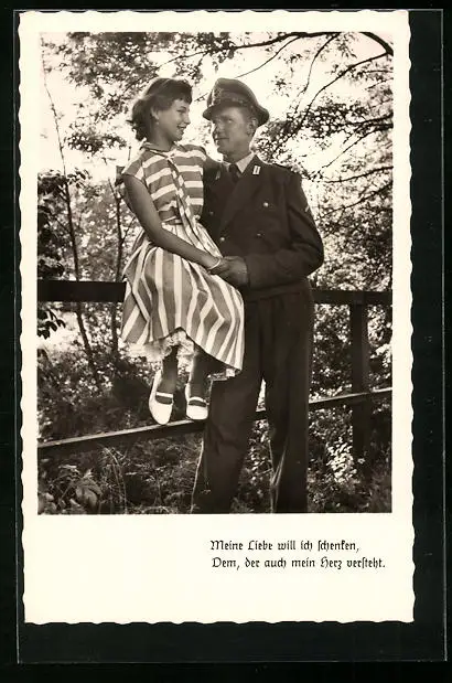 AK Soldat der Bundeswehr mit junger Frau, Meine Liebe will ich schenken...