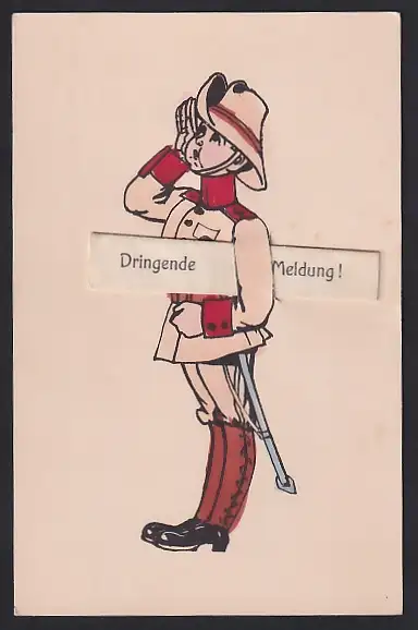 AK Soldat der Schutztruppe in Tropenuniform mit einer dringenden Meldung unterm Arm
