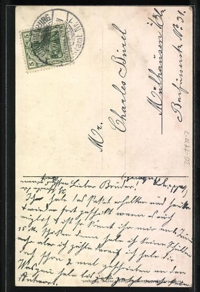 alte Ansichtskarte, gelaufen 1908, Stempelspur, guter Zustand