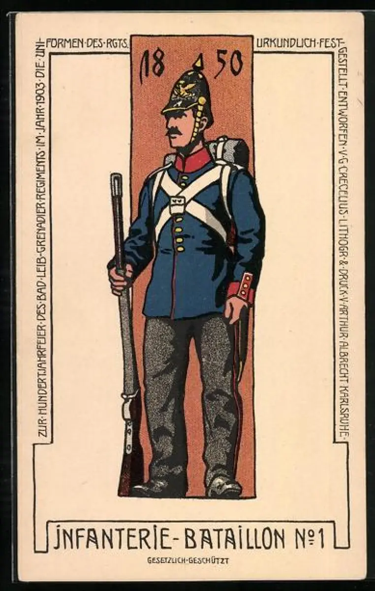 AK Soldat des Infanterie-Bataillon No. 1 in Uniform von 1850