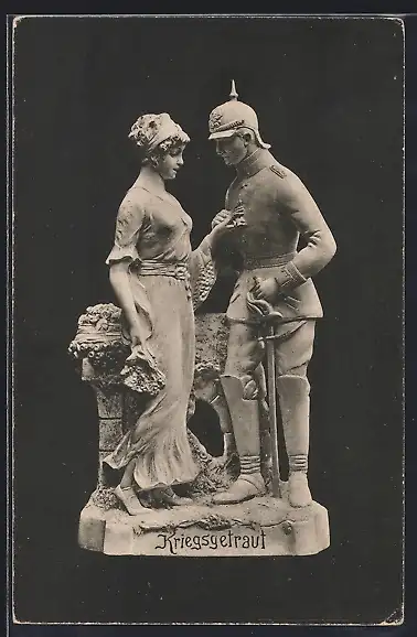 AK Soldat in Uniform mit Schwert und seine Frau, Kriegsgetraut