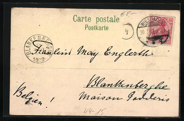 alte Ansichtskarte, gelaufen 1902, guter Zustand