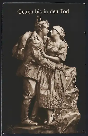 AK Soldat mit seiner Geliebten, Lebende Statuen, Getreu bis in den Tod