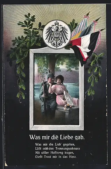 AK Soldat mit seiner Liebsten, Soldatenliebe