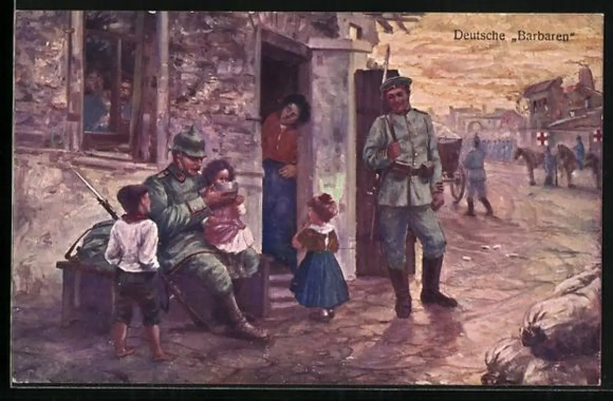 AK Soldat teilt sein Mittagessen mit einem kleinen Mädchen, Deutsche Besetzung, Rotes Kreuz