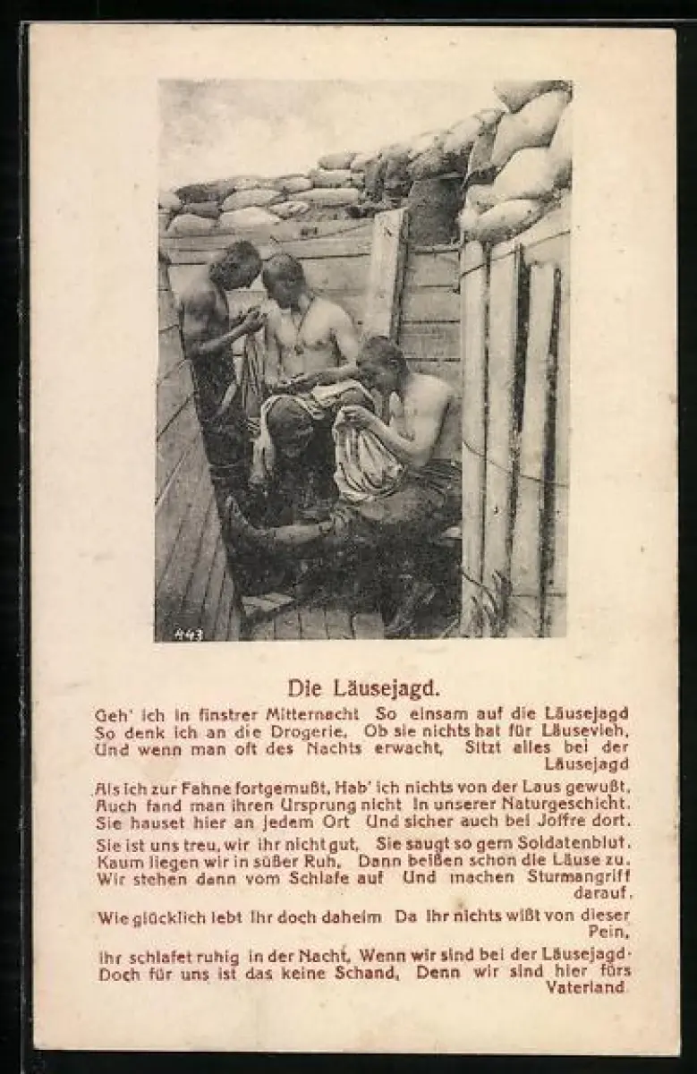 AK Soldaten auf Läusejagd im Schützengraben, Gedicht