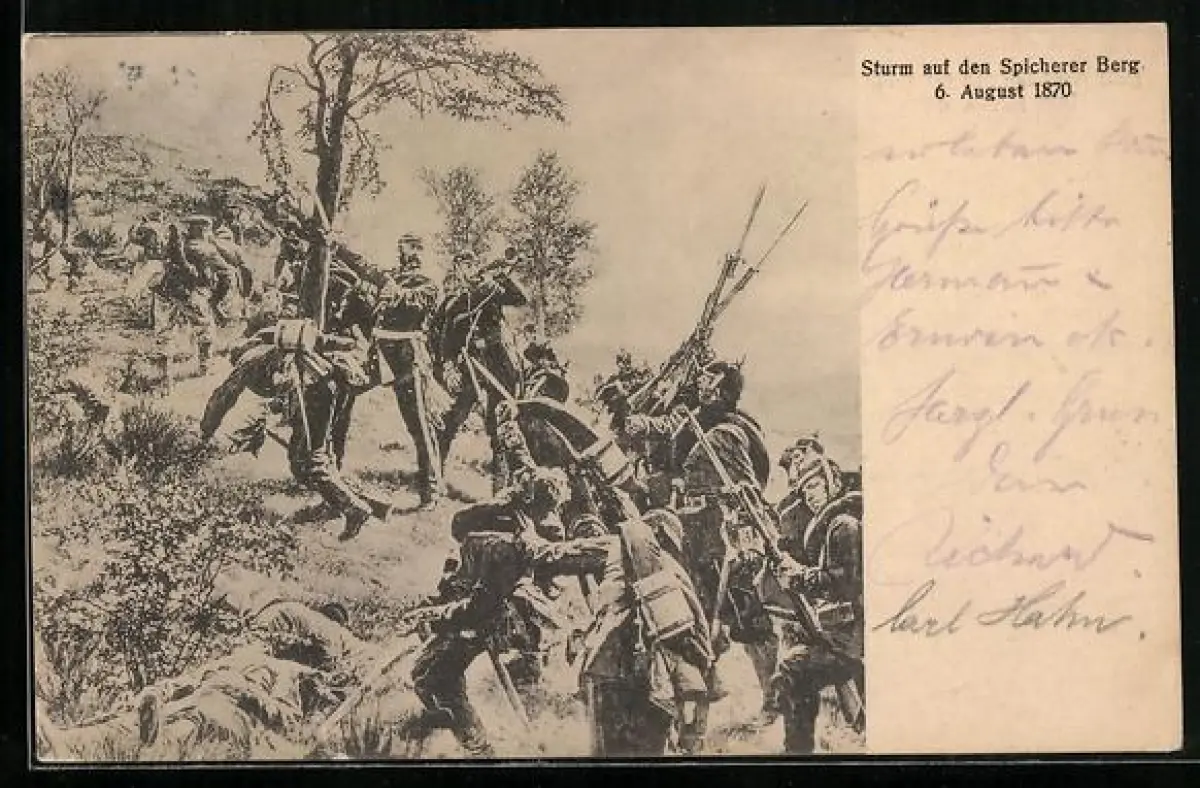 AK Soldaten beim Sturm auf den Spicherer Berg 1870