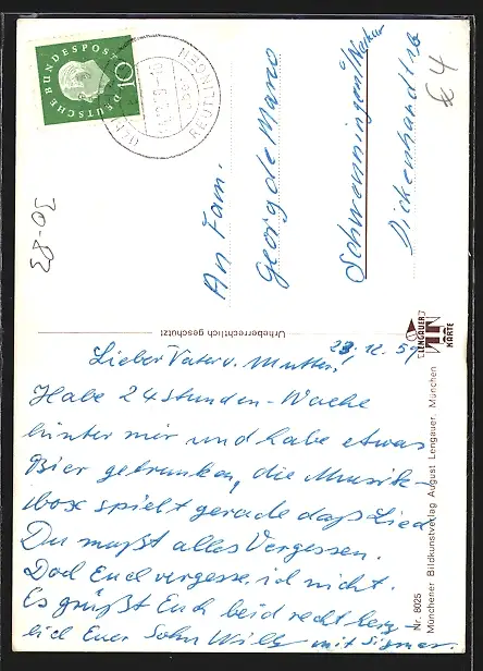 alte Ansichtskarte, gelaufen 1959, guter Zustand