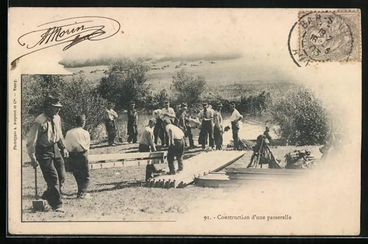 AK Soldaten in Uniform beim Brückenbau