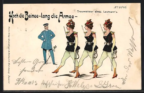 AK Soldatenhumor, Traumbilder eines Leutnant`s, Frauen in Uniform