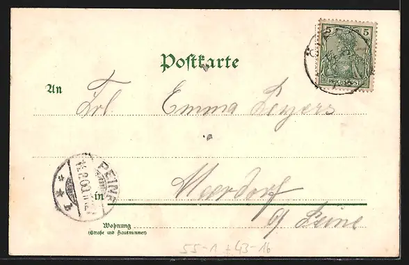 alte Ansichtskarte, gelaufen 1900, guter Zustand