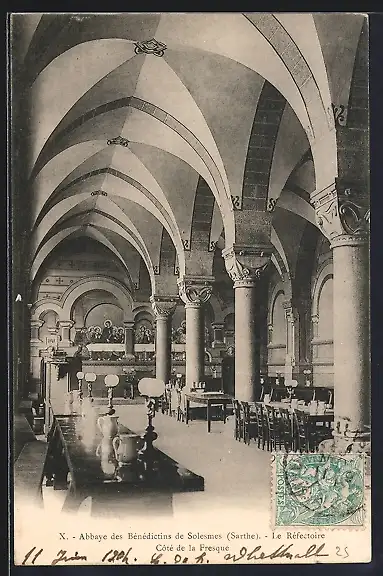 AK Solesmes, Réfectoire de l`Abbaye des Bénédictins, Côté de la Fresque