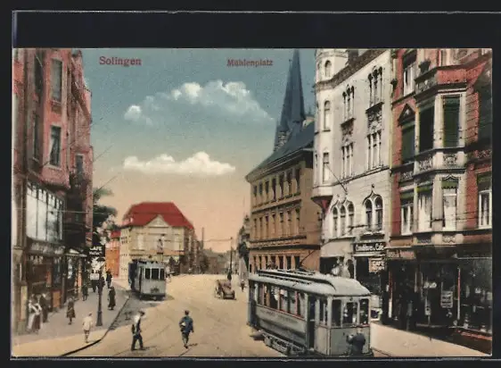 AK Solingen, Mühlenplatz mit Strassenbahn