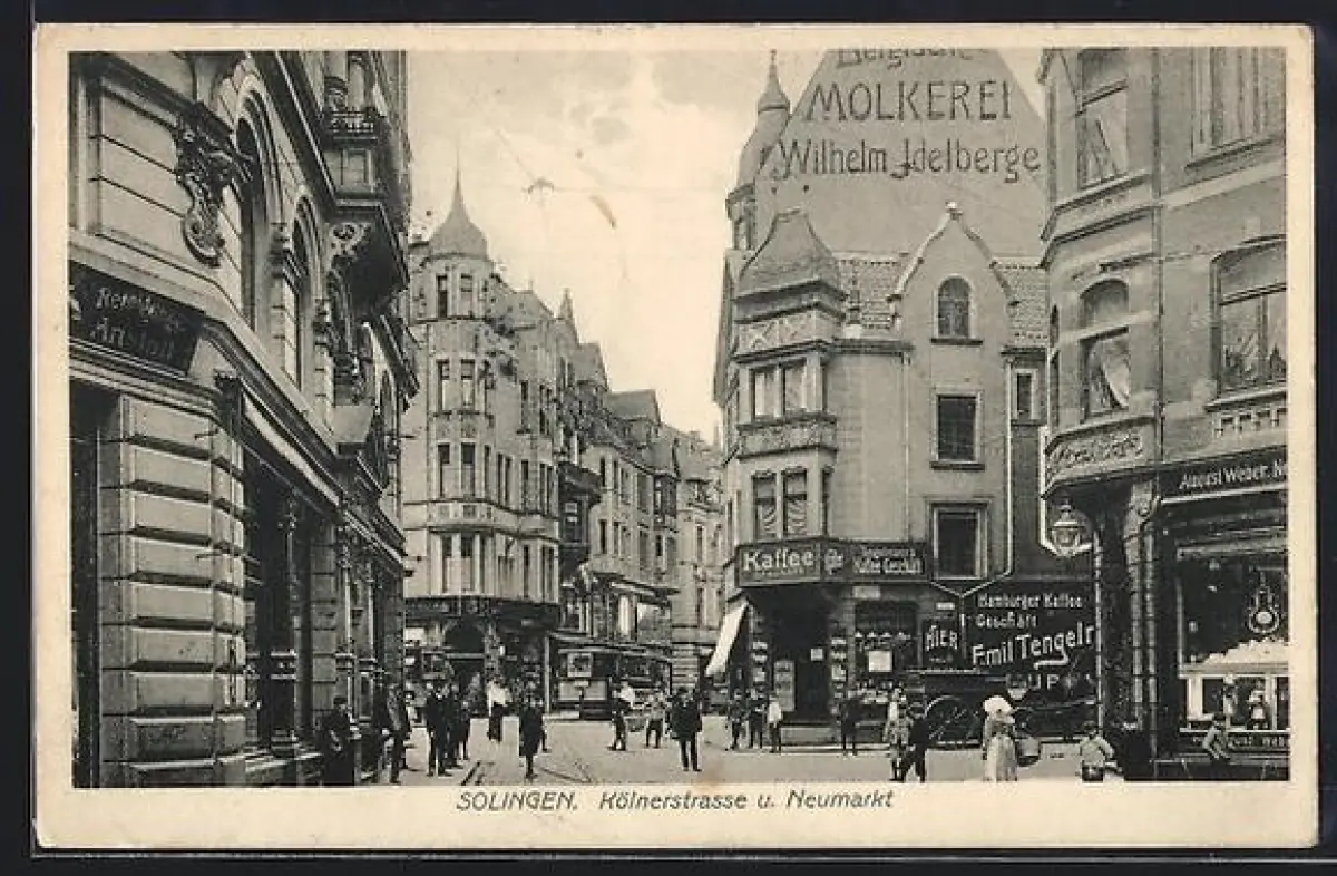 AK Solingen, Neumarkt und Kölnerstrasse mit Geschäften und Strassenbahn