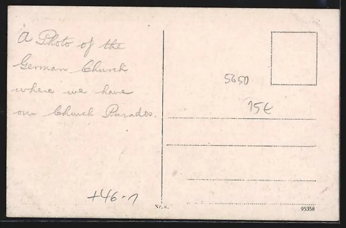 Personenbezogene Daten auf der Rückseite der Karte wurden durch blauen Textmarker unkenntlich gemacht. Die blauen Stellen sind auf die Vorderseite durchgeweicht und wirken sich negativ auf das Postkartenfoto aus