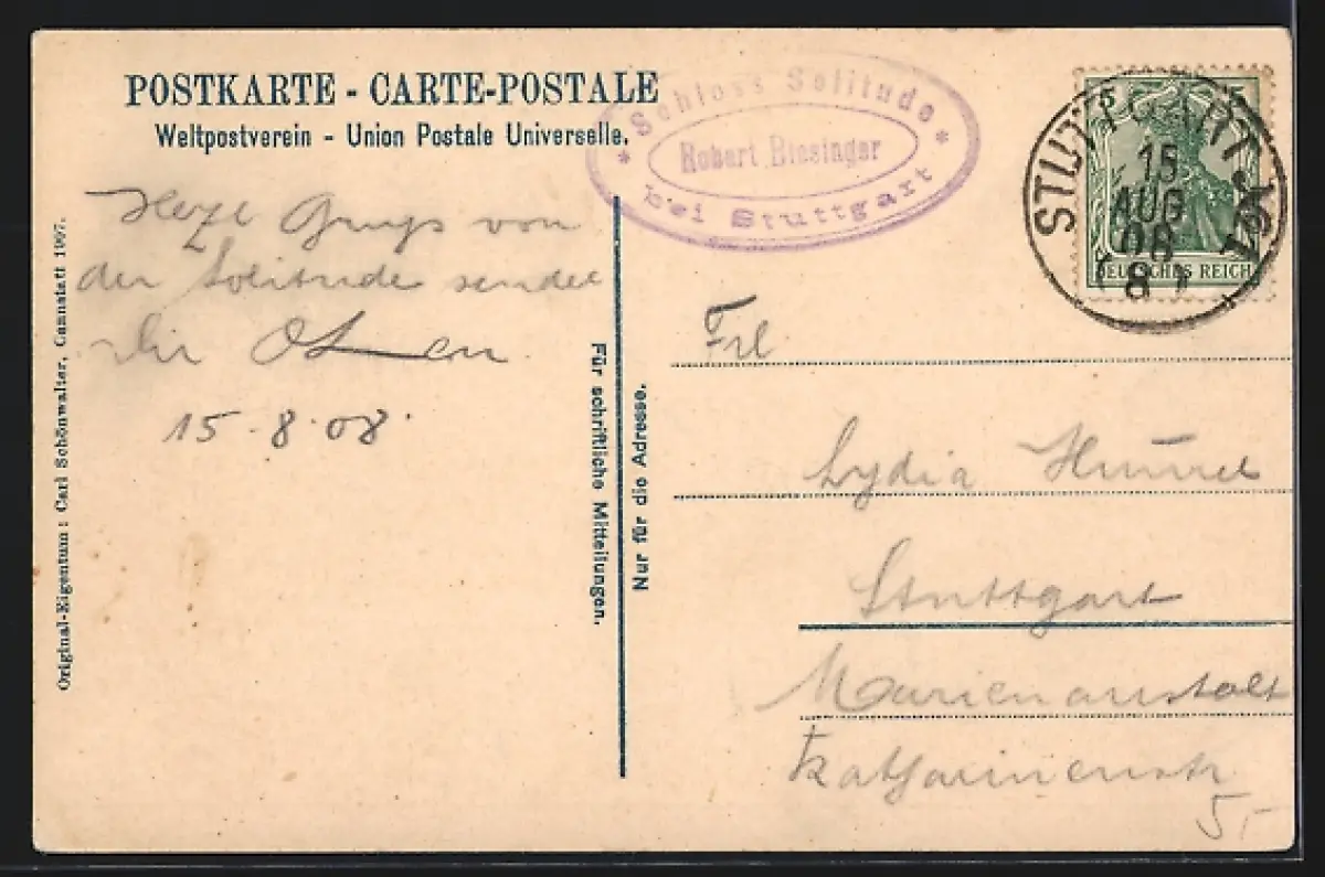 alte Ansichtskarte, gelaufen 1908, guter Zustand