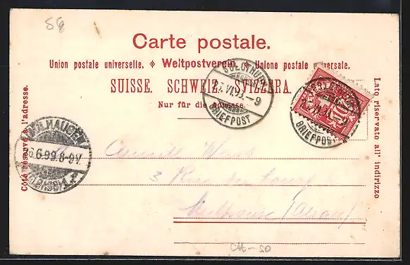 gelaufen 1899, Eckknick unten re., guter Zustand