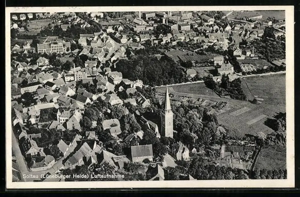 AK Soltau /Lüneburger Heide, Luftaufnahme des Ortes