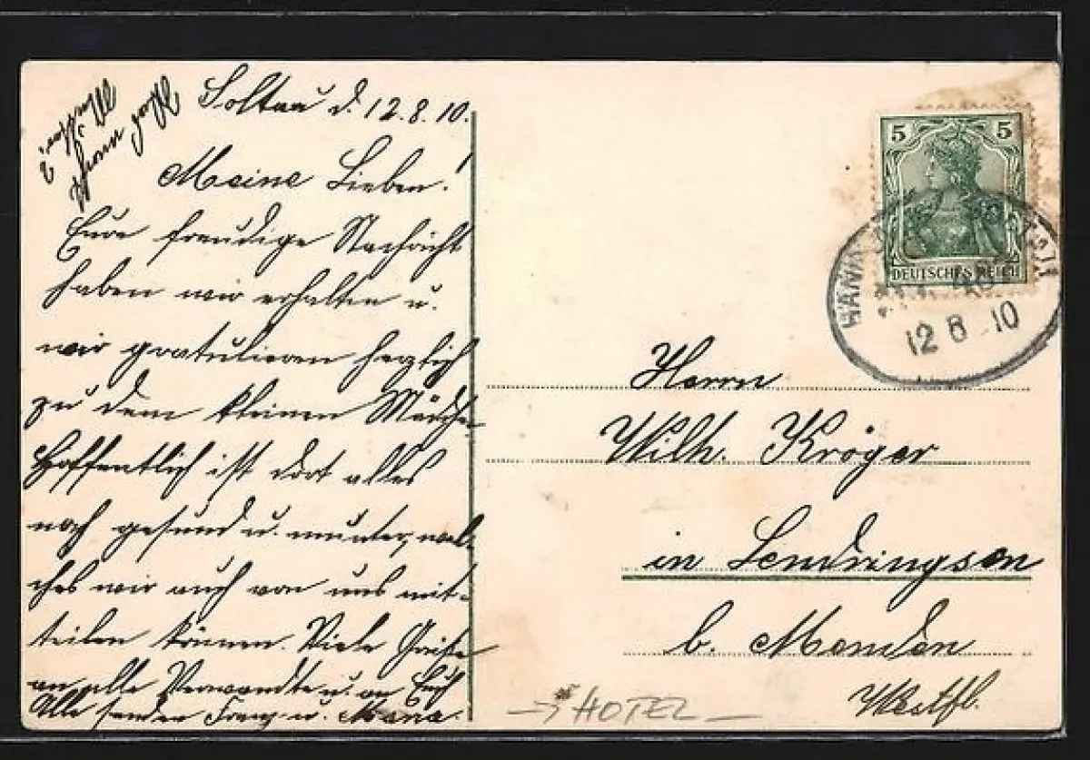 alte Ansichtskarte, gelaufen 1910, guter Zustand