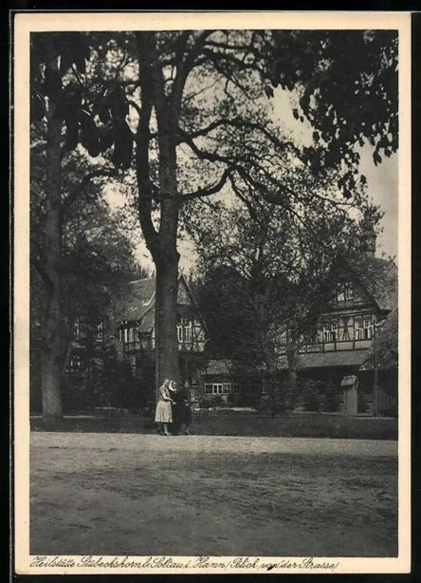 AK Soltau, Stübeckshorn, Heilstätte der Landesversicherungsanstalt Hannover, Leute im Garten