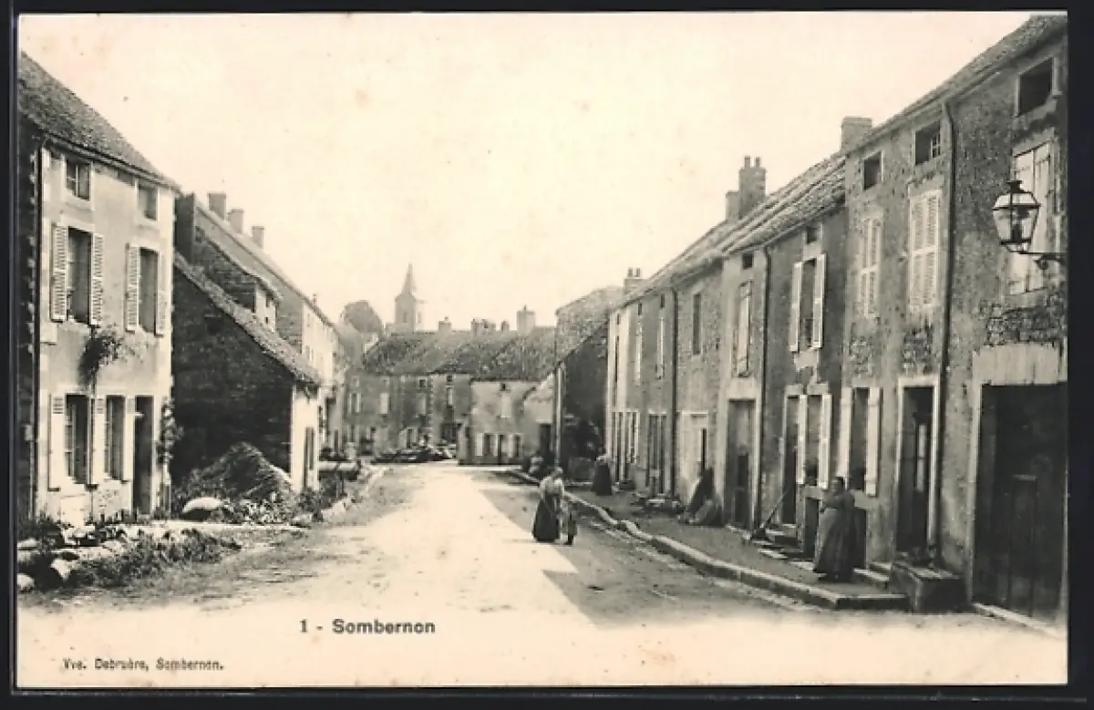 AK Sombernon, Strassenpartie mit Anwohnerinnen